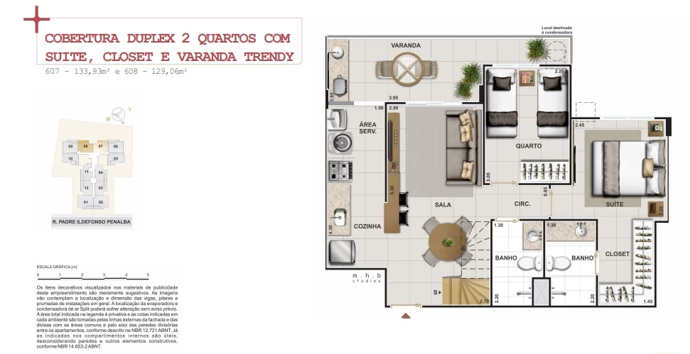 Cobertura duplex 2 quartos com 129m² e 133m².