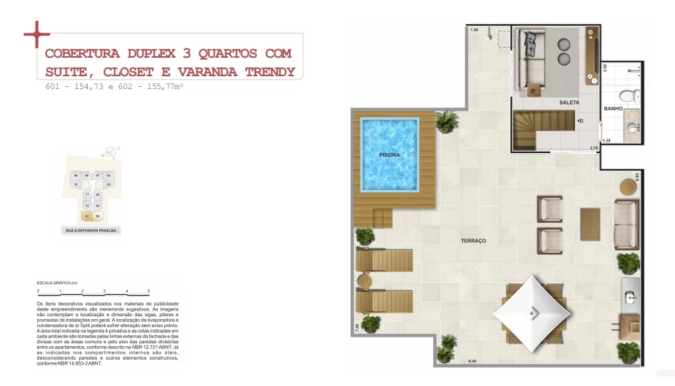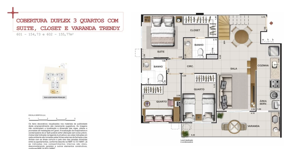 Cobertura Duplex 3 quartos, com 154m² e 155m².
