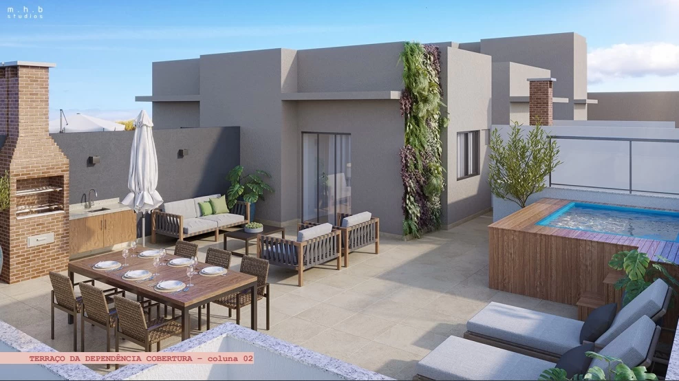- Coberturas entregues com piscina, deck e churrasqueira com bancada.